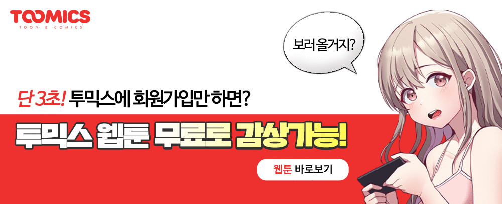 투믹스에서 단 1초만 가입하면 끝입니다. 투믹스에 가입하면 그 즉시 선물함에 무료로 웹툰을 볼 수 있는 무료이용권 6장이 발급됩니다. 또한 무료충전소, 다양한 월별 무료 이벤트 등을 통해 무료로 코인을 얻어 작품들을 감상하실 수 있습니다.